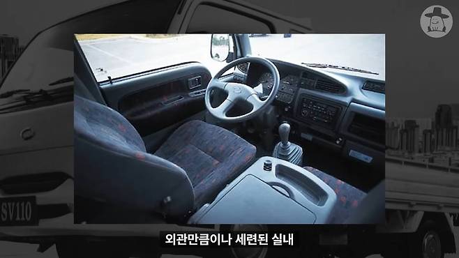 도시형 1톤 트럭을 표방하며 등장한 SV110은 외관부터 남달랐습니다. 마찬가지로 이쪽도 이탈리아의 카로체리아 베르토네에 디자인 외주를 주면서 당시 경쟁차인 깜찍한 '뉴 포터', 오리지널 아틀라스와 더 닮은 '봉고 프론티어'와 비교하면 '도시형 트럭'이라는 문구에 걸맞게 세련미가 돋보였어요.