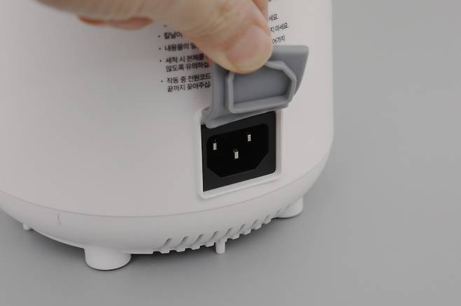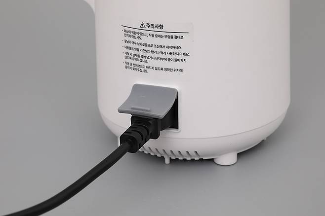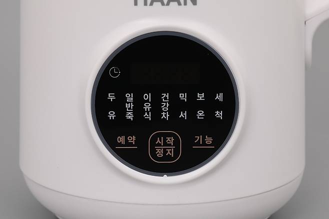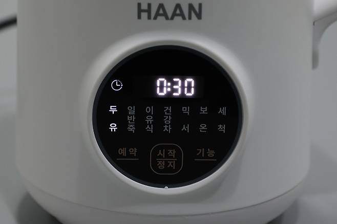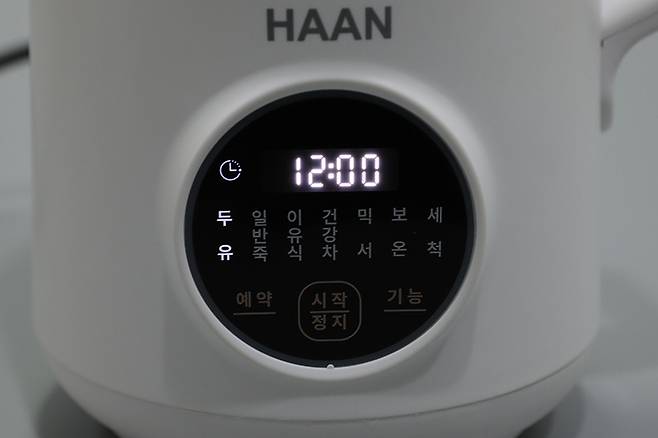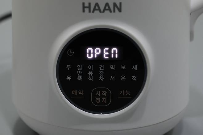 한경희 두유제조기 HSR-D4001A1에 전원선을 연결하면 디스플레이가 켜지면서 사용할 수 있는 상태가 된다.