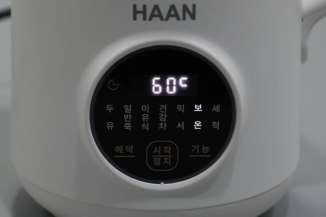 각 메뉴의 제조가 종료되면 55℃의 온도로 2시간 동안 유지되며, 별도로 보온을 하고 싶을 때는 보온 모드를 선택하면 60℃로 가열 후 2시간 동안 보온이 유지된다.