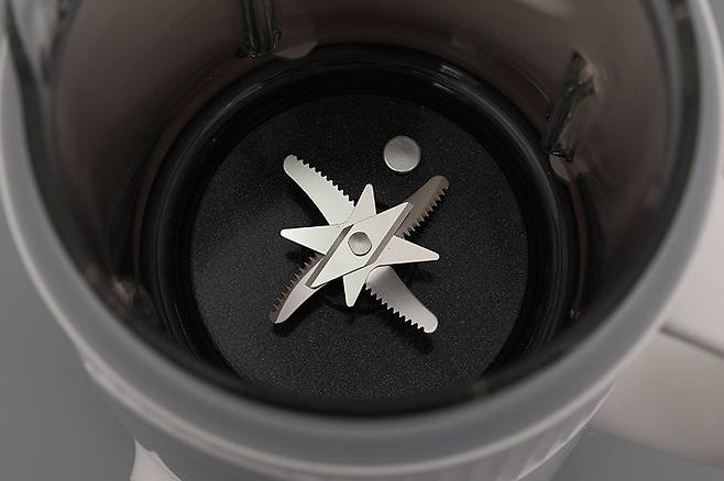 내부 용기의 안쪽을 보면 세라믹 코팅 바닥에 재료를 갈고 섞어주는 칼날이 자리 잡고 있다. 칼날은 10중날로 분쇄력이 뛰어나 재료들을 곱게 갈아내 부드러운 음료로 만들 수 있다.