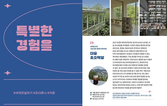 작년에 발간한 1탄에서는 보물 같은 장소 300곳을 소개했다면, 이번 2탄에서는 '동네 코스' 형식으로 구성했어. 지금 내 기분과 감정에 따라 몸만 떠나면 된 다는 것!😎