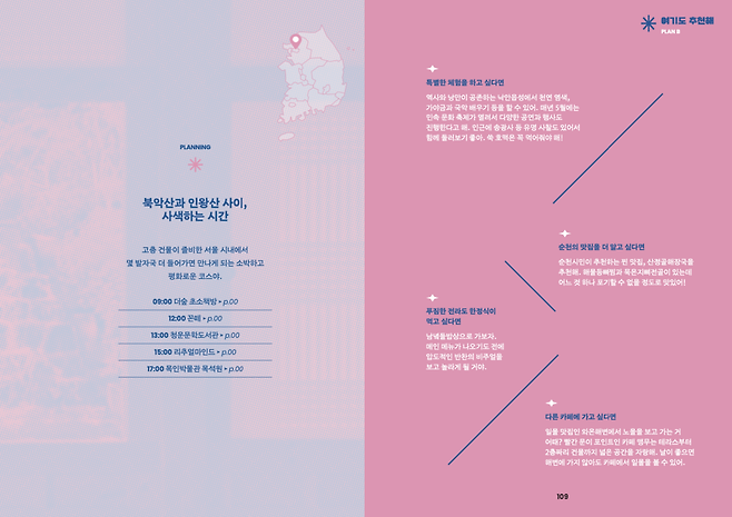 이번 여행책은 하루를 책임지는 코스로 구성되어 있어.