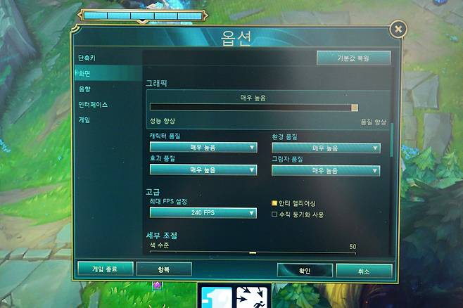가장 인기많고 흔하게 하는 게임은 역시 리그오브레전드입니다. "매우 높음" 옵션에서 평균 프레임 230대로 유지가 되어 원활한 플레이가 가능했고 발열의 경우에도 CPU는 80도 중반대를 유지가 되는걸 확인할 수 있었습니다.