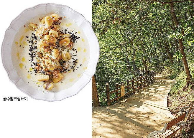 대표 메뉴 들기름고사리파스타 1만7천원, 공주밤크림뇨끼 1만6천원 주소 충남 공주시 수원지공원길 131-21 영업시간 월~금 11:30~20:00 (15:00~17:00 브레이크타임), 토 11:30~15:00(일 휴무) 문의 0507-1342-9600, @chorok_bistro