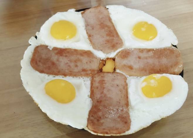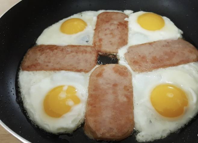 집에 있는 재료로 초초초 간단하게 만들어본 반찬 스팸계란후라이였습니다~