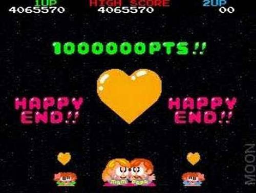 검떠 : 사실 저는 이 아케이드 버전 엔딩을 보고 충격을 먹었었는데요, 이유는 저는 PC 도스 버전으로 이 게임을 즐겨 했었거든요. 그런데 PC 도스 버전은 엔딩이 좀 달라요. 저렇게 화장을 한 듯한 남성 같은 히로인이 아니고, 아예 무더기로 여성들이 나와서 도망가는 버전입니다.