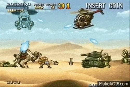 조기자 : 저는 이 '메탈 슬러그'만의 경쾌함은 장난이 아니라고 생각해요. 각 캐릭터 동작 하나 하나, 비행기나 탱크 유닛 하나 하나 엄청나게 완성도가 높아요. 지금까지도 같은 장르에서 상대를 찾을 수 있을까 싶을 정도에요. 어쩜 이렇게 재밌어 보이게 잘 만들어낼 수 있었는지.. 크으.