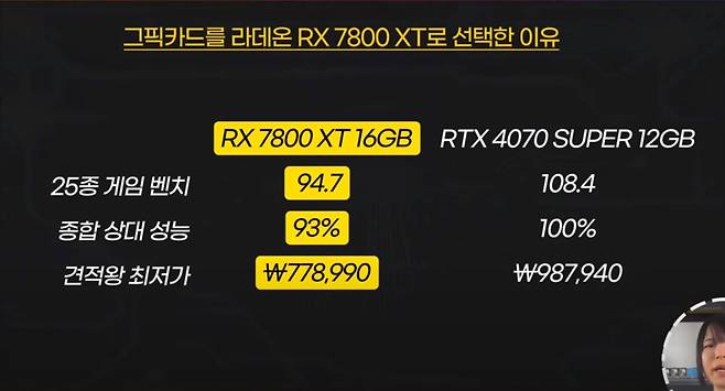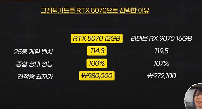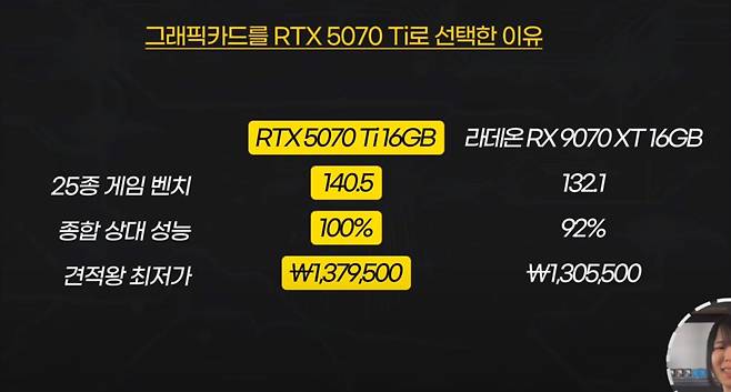 [질문자 : 근데 압도적인 가성비라고 하기에는 지금 가격이 5070 Ti와 비교했을 때