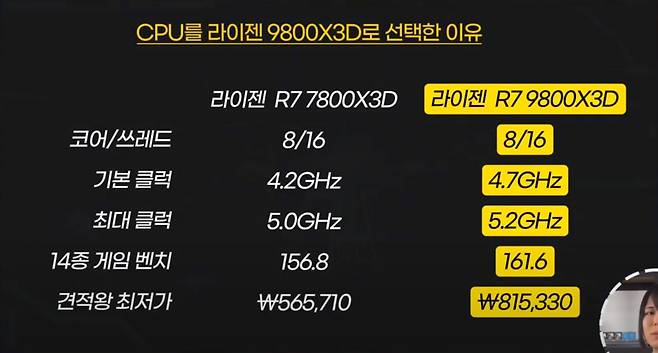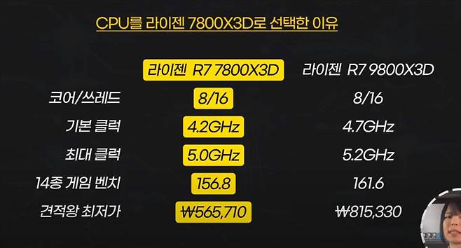 CPU는 7800X3D보다 좀 더 높은 게임성능을 보여주고, 발열구조가 개선된