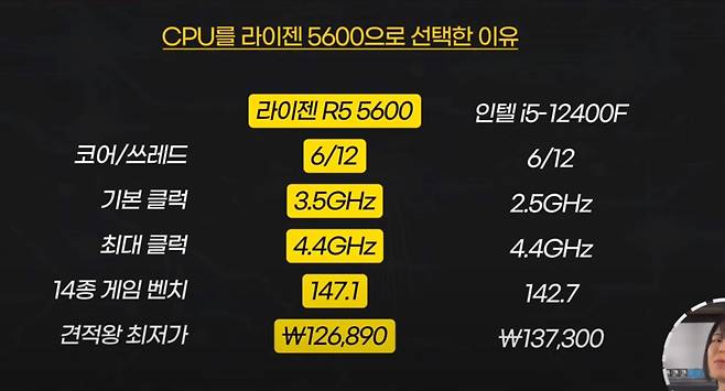 100만원 아래에서는 늘 말씀드리지만 CPU로 라이젠 5600과 i5 12400F