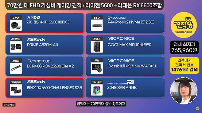 70만 원대 추천 견적서 (FHD 가성비 게이밍)
