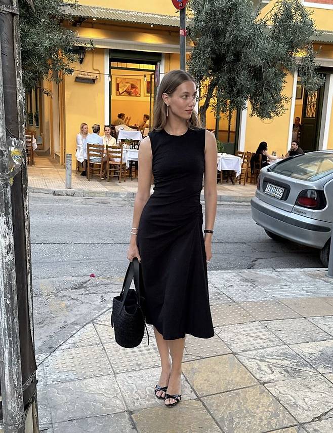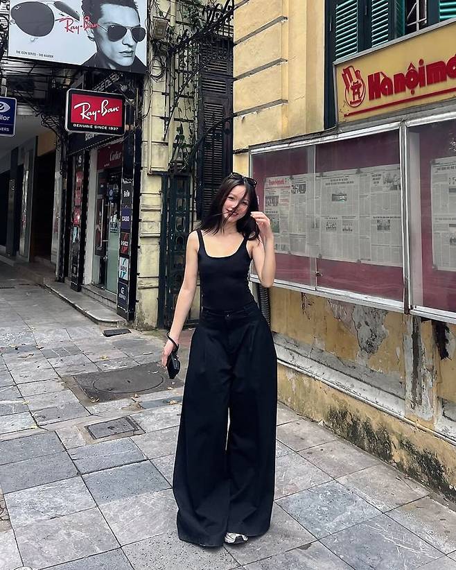 출근룩, 모임룩, 휴가룩 등 상황에 따라 블랙 슬랙스, 블랙 슬립 원피스, 블랙 민소매 니트 등으로