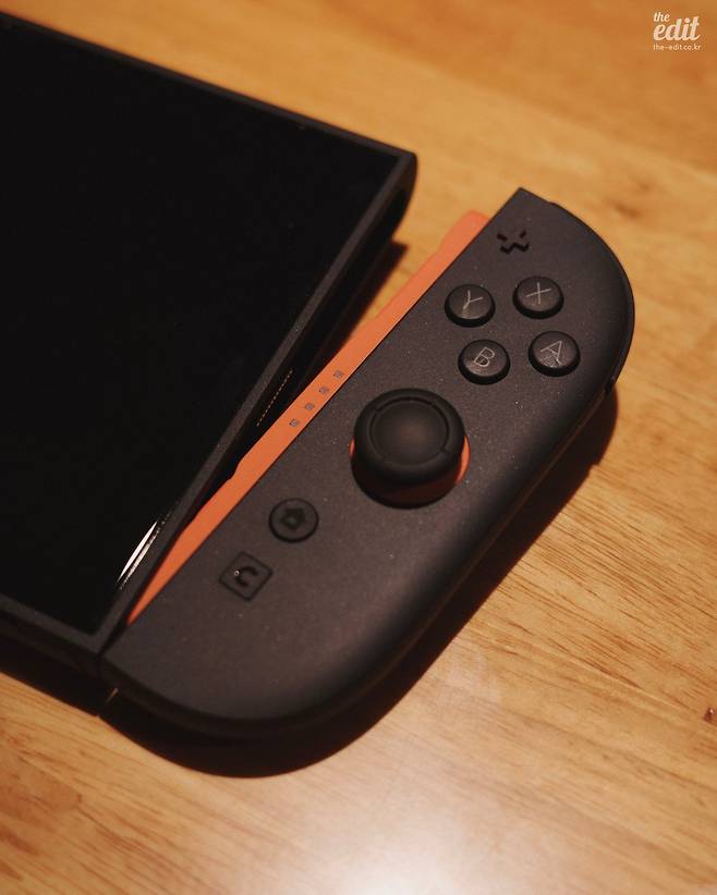 맨 처음으로 느끼는 스위치2의 첫인상은 “스위치1이 더 크고 고급스러워졌다”입니다. 초기형 스위치1과 개선판인 스위치 OLED를 같이 놓고 비교해 보면 확연히 커진 걸 확인할 수 있고, 플라스틱의 마감도 개선되어 훨씬 고급스럽다고 느껴집니다. 우려와 다르게 크기에 비해 무게는 아주 무겁다고 느껴지지 않았습니다. 여기서 더 커지면 휴대하는 게 여러모로 어려워질 것 같은데, 그 마지노선을 잘 잡은 느낌입니다. 거기에 조이콘도 기기와 색깔을 맞춘 검은색으로 통일돼서 전반적으로 1세대 스위치보다 더 진중한 분위기를 냅니다.