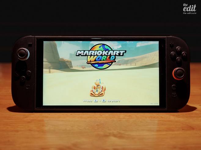 스위치2가 다시 LCD를 사용한다는 것이 알려졌을 때 당장 직전에 나온 스위치 OLED 모델과 비교하는 이야기가 많았는데요. 둘을 비교해 보면 스위치2 LCD가 색을 더 정확하게 표현한다는 느낌을 받았습니다. 스위치 OLED는 상대적으로 옛날 삼성 갤럭시폰처럼 채도가 과도하게 올라가 있다는 느낌이 들었거든요. 거기에 해상도도 더 높고, VRR을 지원하니 여러 면에서는 개선됐다고 볼 수 있을 것 같습니다. 다만 스위치 OLED가 패널의 특성상 암부 표현력과 반응 속도에서는 절대적으로 유리하고, 시야각 면에서도 스위치2보다 더 나았습니다.
