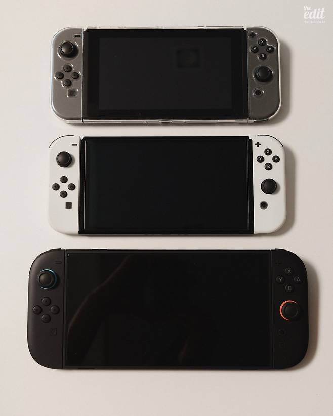 위에서부터 초기형 스위치1, 스위치 OLED, 스위치2