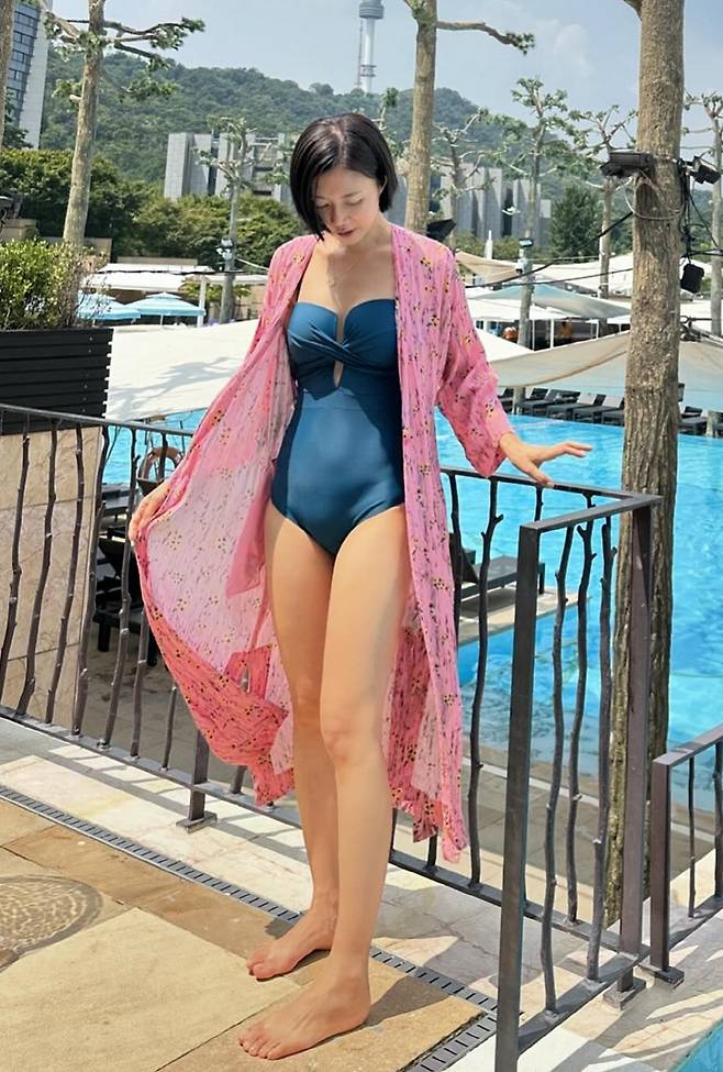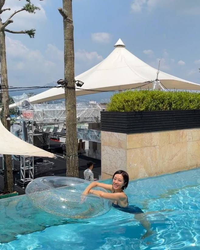 사진 속 서현진은 서울의 한 호텔 수영장에수 청록색 수영복으로 몸매를 드러냈다. '아들맘'이지만 완벽하게 관리된 몸매가 시선을 강탈한다. 그는 평소 요가로 몸관리는 하는 것으로 알려졌다.