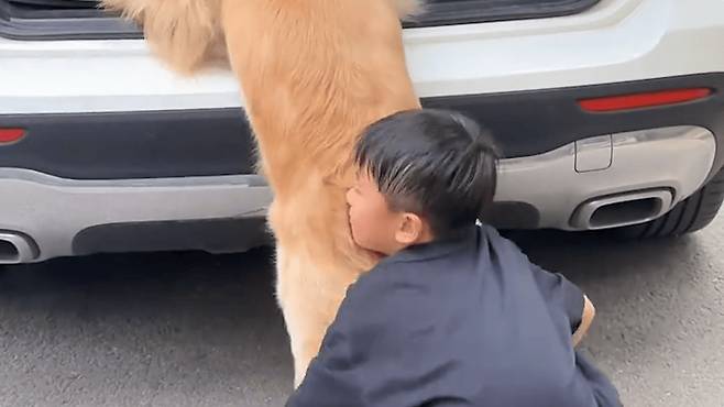 그런데 아이가 강아지의 뒷다리 두 개를 잡고 온 힘을 다해 들어 올리려 했지만, 세상에, 골든 리트리버가 어찌나 무거운지 마치 뿌리를 내린 것처럼 꼼짝도 하지 않았습니다!