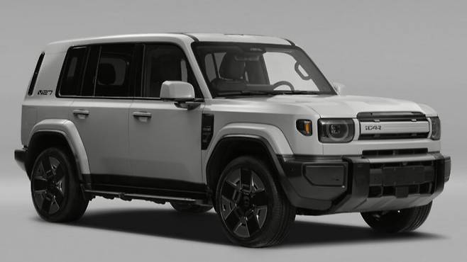 디자인 역시 눈길을 끈다. 외형은 누가 봐도 메르세데스-벤츠 G바겐을 연상시키는 각진 실루엣을 지녔다. 각진 차체 라인과 원형 헤드라이트, 두툼한 범퍼 디자인이 조화를 이루며 클래식 오프로더의 감성과 현대적인 세련미를 동시에 담아냈다. 전면 중앙에는 ‘iCAR’ 로고가 자리하고, 두툼한 블랙 범퍼와 스키드플레이트는 강인한 존재감을 강조한다.