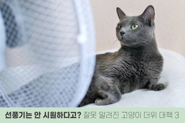 고양이는 땀샘이 거의 없기 때문에 선풍기 바람에는 인간만큼 시원함을 느끼지 못하고, 체감 온도도 인간과 달라 인간이 시원한 온도가 고양이게는 더울 수 있습니다.