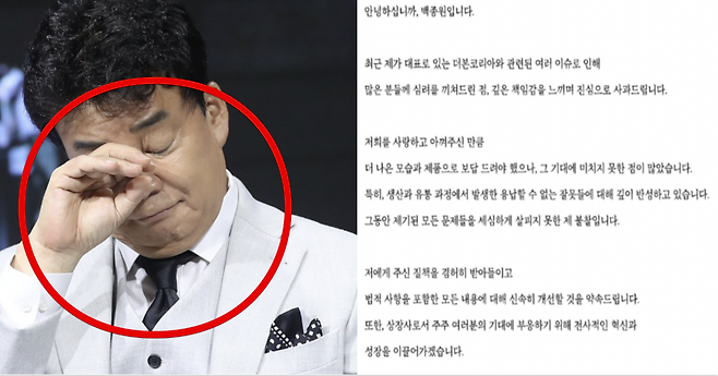 백종원 측의 입장과 사과문 발표
