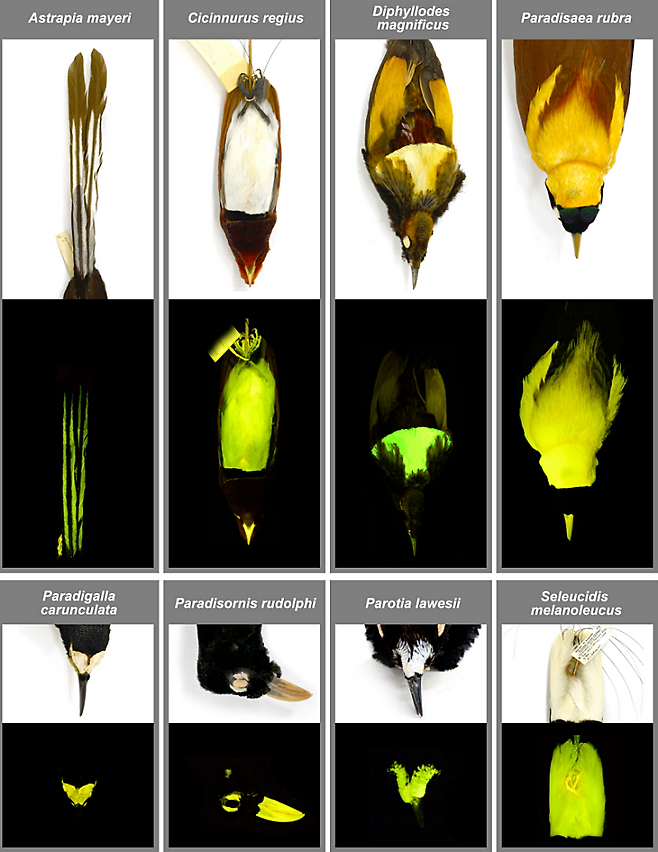 미국 자연사박물관(AMNH) 및 네브래스카대학교 링컨캠퍼스(UNL) 공동 연구팀은 12일 공식 채널을 통해 이 같은 사실을 발표했다. 연구팀은 극락조 45종 중 37종에서 생물발광을 확인했다.