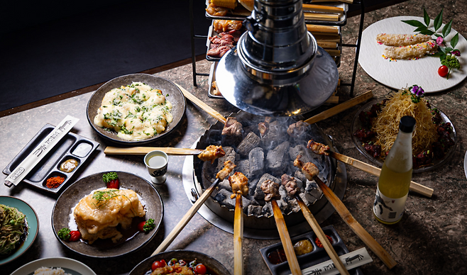 ▶ 원시구이 하오세트(2~3인, 48,000원): 소고기·양고기·돼지고기·닭고기 등 다양한 꼬치를 직접 구워 먹는 메뉴. 쯔란, 칠리소스, 와사비 등 6가지 소스로 입맛에 맞게 즐길 수 있습니다.