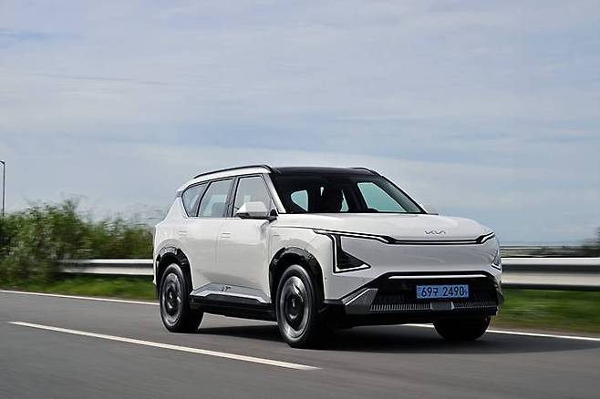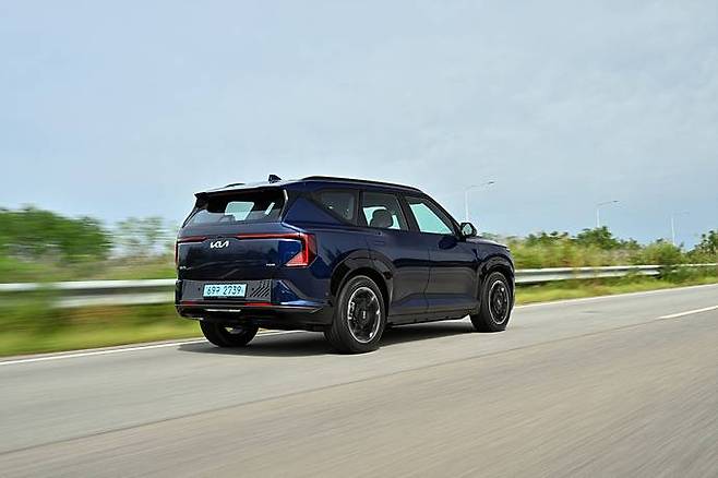 외관은 멀리서 봐도 기아의 전기차라는 게 단번에 드러난다. 각진 실루엣에 세로형 헤드램프가 강조되어 있다. 전기차지만 지나치게 미래지향적이거나 이질적이지 않고, 오히려 정통 SUV의 인상을 유지했다.