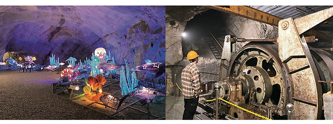 활옥동굴은 한때 동양 최대 규모를 자랑한 광산이었다. 우리나라 산업화의 역사를 담고 있는 곳으로 2019년 체험동굴로 재탄생했다. 동굴 입구에 도착하자 시원한 바람이 온몸을 훑고 지나갔다. 어둡고 깊은 거인의 입처럼 벌어져 있는 동굴 속에서 차가운 기운이 퍼져나왔다. 평온한 어둠에 감싸인 동굴은 바깥과는 전혀 다른 세상이었다. 동굴이라고 하면 검고 어두운 장소를 생각하기 마련인데 활옥동굴은 밝은 백색 모암으로 이뤄져 포근하고 아늑한 분위기를 띠고 있다. 동굴 내 원적외선 테라피룸이 있어 맑은 공기를 마시며 휴식을 취할 수도 있고, 과거 동굴의 역사에 대한 영상도 감상할 수 있다. 국내 최대 규모를 자랑하는 광물 운반용 권양기의 웅장한 모습과 함께 다양한 산업의 흔적들도 볼 수 있다.