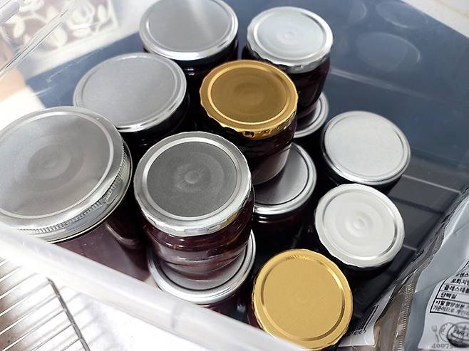 딸기 5kg을 손질할 때는 한숨이 절로 나왔지만, 이렇게 딸기잼이 가득 쌓이니 고생을 다 보상받는 느낌입니다.