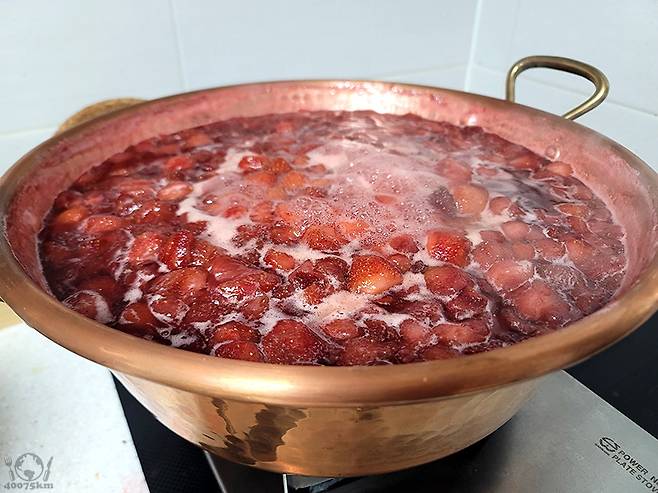 거의 10리터에 육박하는 무시무시한 양의 딸기와 설탕 혼합물을 보면 기가 질립니다.