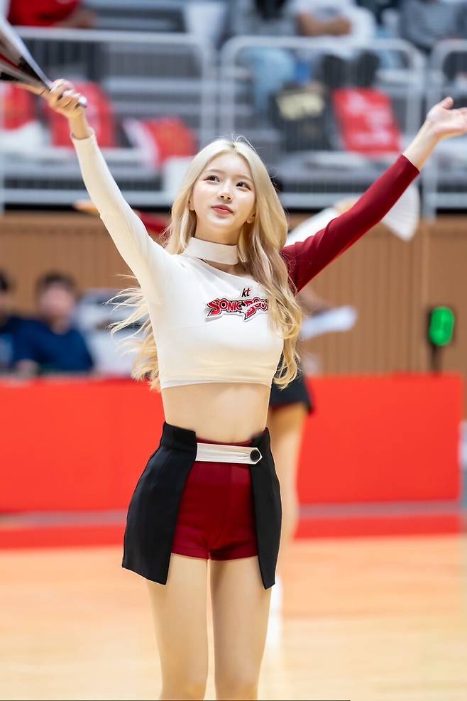 요?엄청 떨렸어요. 연습을 충분히 하지 못했는데, 여자농구 박신자컵에 급하게 투입됐어요. 정말 어떤 정신으로 했는지 모르겠더라고요. 처음이라 모든 게 후다닥 지나간 것 같아요. 이후에 KT 개막전을 했는데, 데뷔전보다 정규리그 개막전이 훨씬 더 많이 떨렸어요. 수많은 팬이 제 앞에 계신 게 너무 신기했고, '나 정말 치어리더구나'라고 느꼈죠(웃음).
