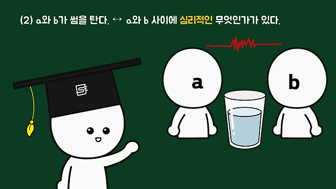 그 방식은 이렇습니다. 일단 혼자서는 썸탈 수 없으므로 2명이 있어야 하고, 그 둘 사이에 무엇인가가 있어야 한다는 명제를 설정합니다.