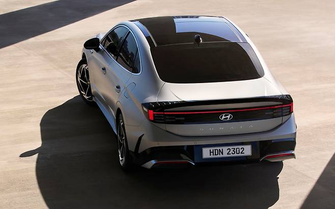 쏘나타는 파격적인 성형을 감행했다. 얼굴에 ‘끊임없이 이은 심리스 호라이즌 램프’라고 부르는 수평형 주간 주행등(DRL)을 달았다. 헤드램프와 라디에이터 그릴, 공기 흡입구는 모두 범퍼에 심었다. 옆모습은 낮고 긴 보닛과 매끈한 지붕 라인으로 스포티한 느낌을 강조했다. 뒷면엔 리어 스포일러가 떠오르는 가니시와 ‘H’자 그래픽을 그린 ‘H 라이트’를 끼웠다.