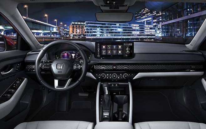 어코드의 인테리어는 직선이 주를 이룬다. 대시보드에 격자무늬 패턴을 그린 유광 블랙 패널을 심었다. 공조장치를 제외한 모든 기능은 7인치 중앙 인포테인먼트 화면을 통해 제어할 수 있다. 최상위 트림엔 12.3인치 디스플레이가 들어간다. 요즘 차에서는 보기 드문 기계식 기어 레버도 눈에 띈다. 각도를 운전석 방향으로 5°가량 기울여 조작성을 높였다.