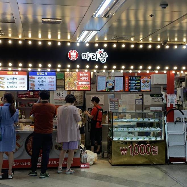 신사역 1번, 8번 출구 쪽 카드를 찍고 나오는 순간 후각을 강탈하는 곳이 있다. 바로 분식점 마리왕. 매장 크기는 작지만 메뉴가 생각보다 다양해 푸짐하게 식사하기 좋다. 메뉴는 김밥, 오뎅, 떡볶이, 꼬치 등. 직장인들에게는 출근 전 아침과 간단한 식사를 해결해 줘 언제나 사람이 붐비는 곳이다. 또한 이곳은 포장이 가능한 곳으로, 잠원 한강 피크닉 가는 이들에게 인기가 좋다.