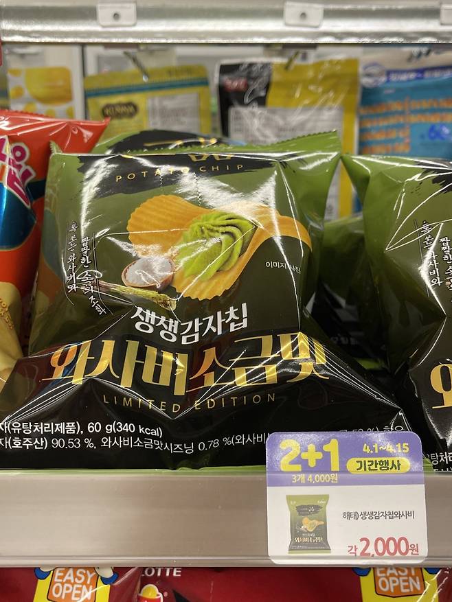 와사비 맛이 코를 뻥 뚫리게 할 정도로 강렬한 알싸함이 인상적인 맛이라 중독성 있어요.