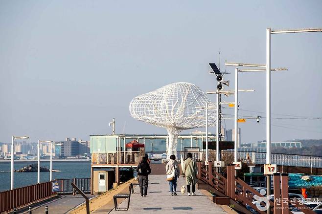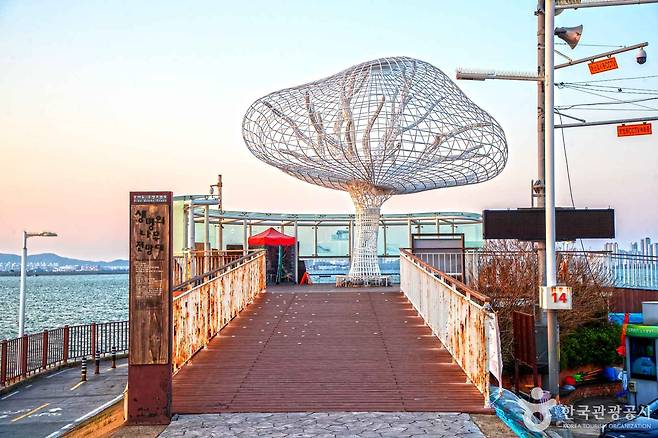 빨강등대에서 도보 약 5분 거리에는 생명의 나무 전망대가 자리합니다. 독특한 나무 조형물과 바다를 향해 놓인 의자들이 어우러진 이곳은 밤이 되면 조명이 켜져 또 다른 분위기로 변합니다. 겨울에는 해가 빨리 지기 때문에, 노을을 본 뒤 자연스럽게 야간 산책 코스로 이어지기에도 좋습니다.