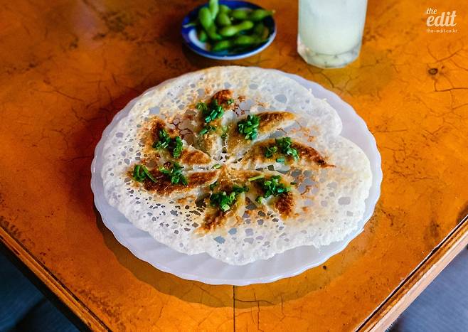 가장 인기 있는 음식은 교자와 야끼소바. 특히 교자는 인스타그래머블한 비주얼이 눈길을 끈다. 속이 실한 7개의 교자가 풍차 모양을 이루며 30cm 지름의 접시를 가득 채운다. 고소하고 바삭한 맛이 술안주로 곁들이기에 더없이 훌륭하다.