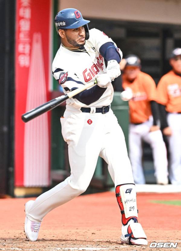 “페라자와 레이예스는 공통점이 많습니다. 스위치 히터고요. 두 팀(롯데와 한화)에는 오랜만에 한 시즌을 풀로 소화하고 있는 외국인 타자입니다.“