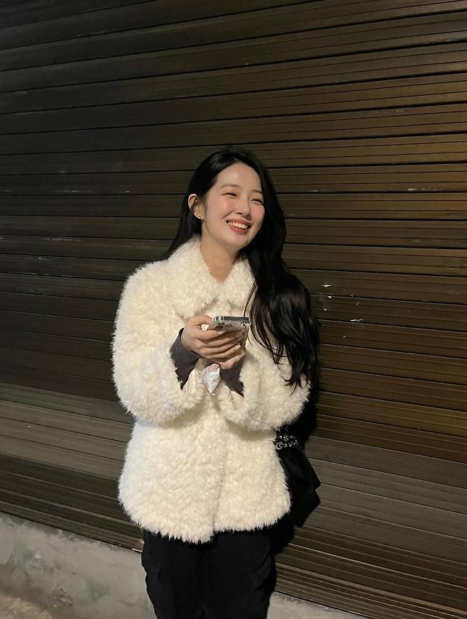 화려한 장식보다는 소재 자체가 주는 풍성함과 따뜻한 색감에 집중해서 이은재 특유의 단아하고 청순한 이미지를 가장 잘 살려낸 영리한 스타일링이라고 할 수 있죠.