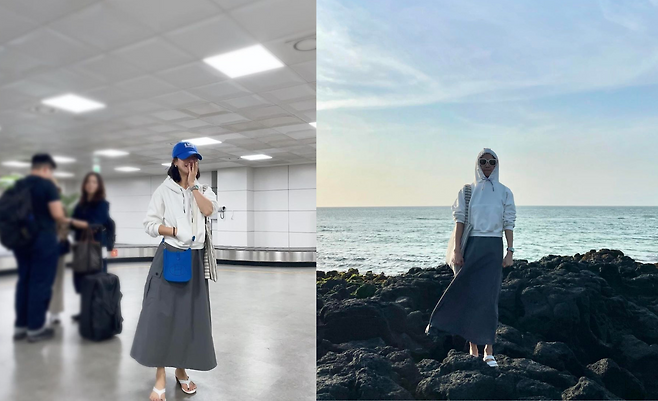 사진 속 조여정은 흰 후드티를 입고 그레이톤의 롱치마와 샌들을 신고 에코백을 들어 캐주얼한 모습으로 여행을 즐겼다.