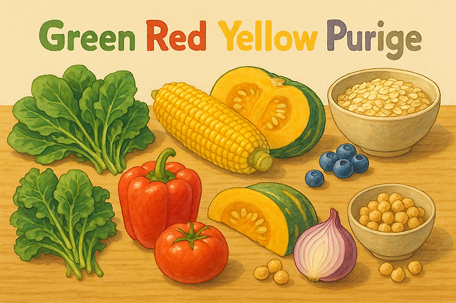 • 녹색 : 시금치·케일 → 엽산·Mg 보충