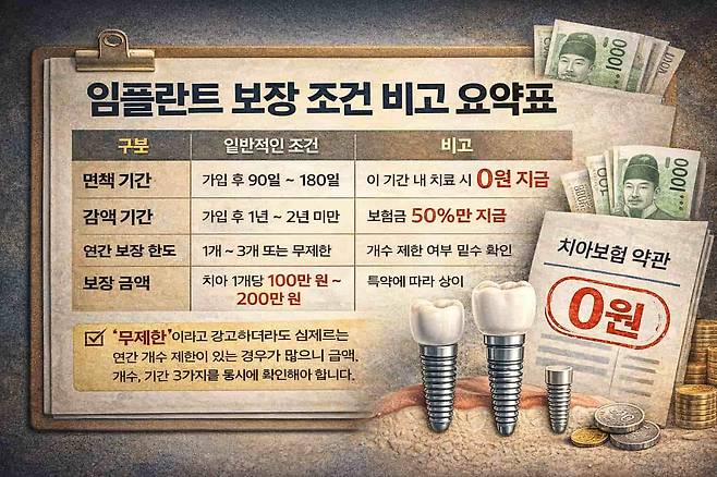 ■ 임플란트 보장 조건 비교 요약