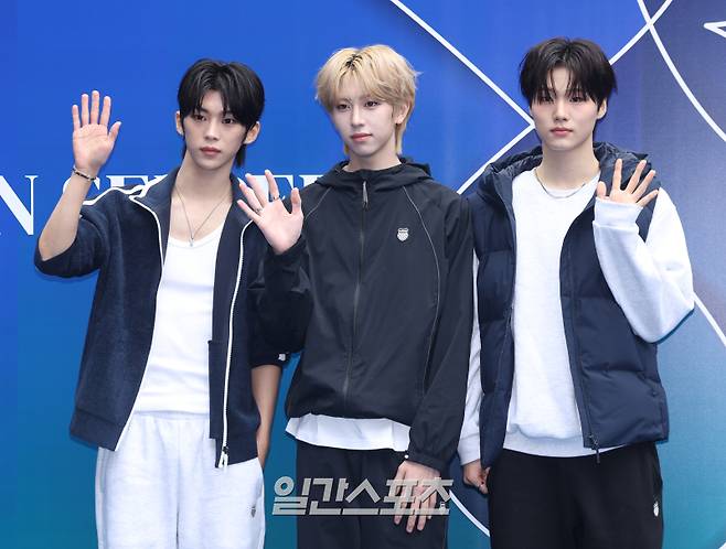아이덴티티 도훈, 누리, 환희가 4일 오전 서울 중구 동대문디자인플라자(DDP)에서 열린 '2026 F/W 서울패션위크' 페노메논시퍼 컬렉션 쇼에 참석해 포즈를 취하고 있다.