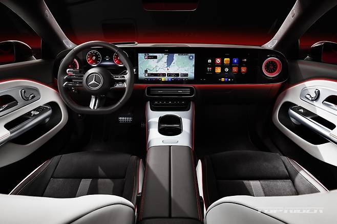 실내에는 10.25인치 디지털 계기판과 14인치 센터 디스플레이, 14인치 조수석 디스플레이로 구성된 MBUX 슈퍼 스크린, 스포츠 스티어링 휠, 스포츠 시트 등이 배치됐다. MBUX 슈퍼 스크린 탑재로 실내 물리 버튼이 최소화됐다. 신형 CLA 트렁크 용량은 405ℓ다.
