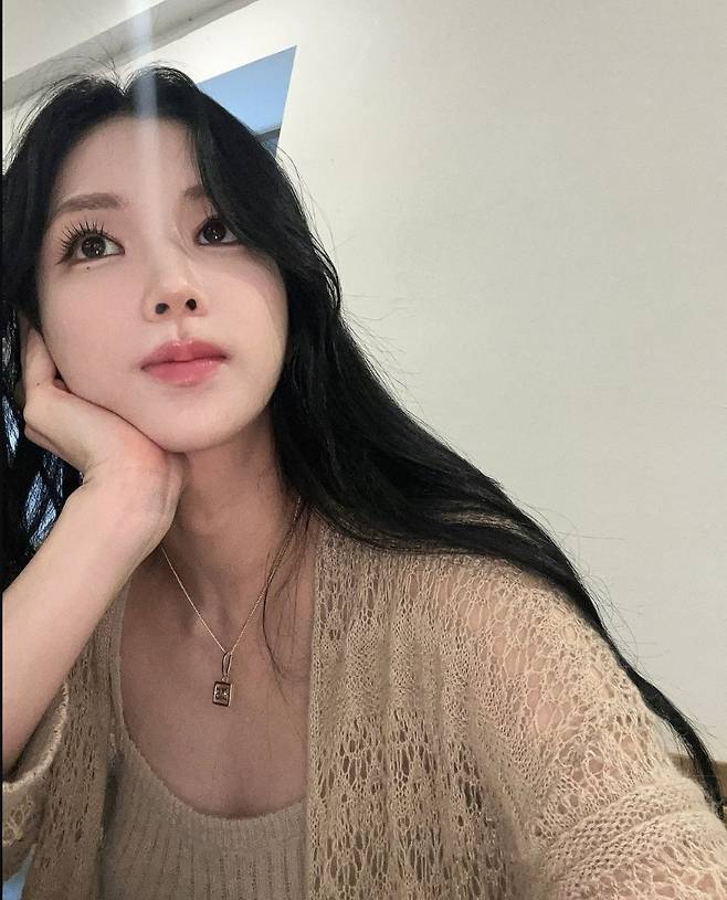 강다은은 베이지 민소매 탑과 펀칭 카디건을 세트로 착용해 우아하고 여리여리한 이미지를 돋보였습니다.