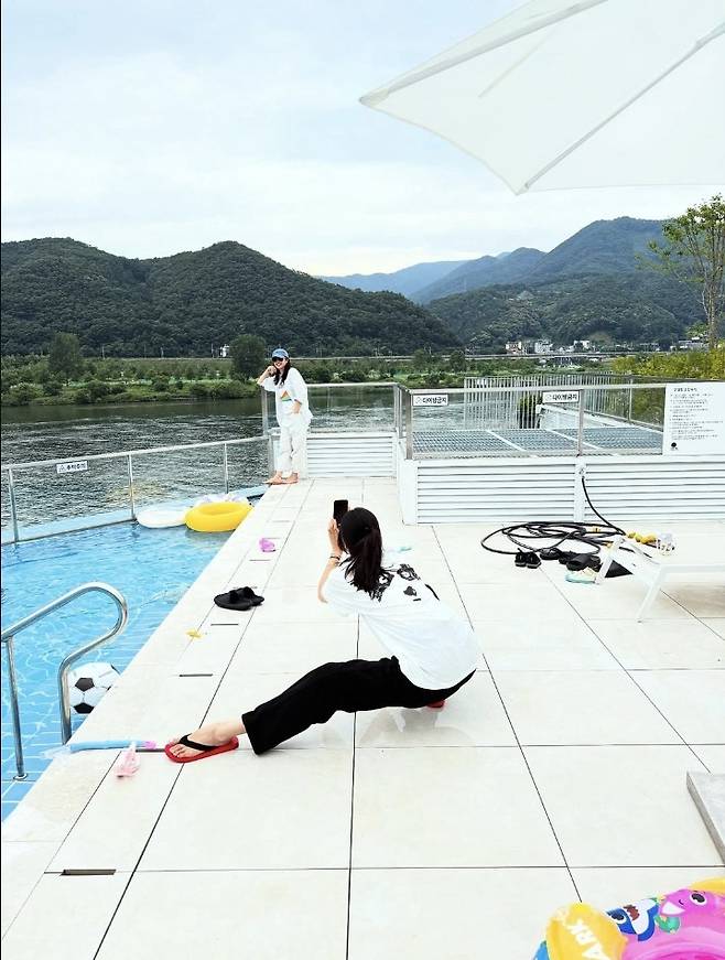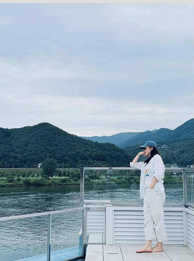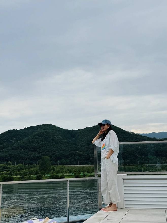 청량한 강가를 배경으로, 손예진은 여유로움과 멋을 동시에 챙긴 화이트 톤의 데일리룩을 선보였습니다.