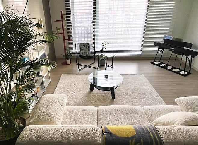 거실 인테리어를 두고 가장 큰 고민은 블라인드와 커튼 둘 중 하나를 선택하는 것이었는데요. 바람에 찰랑이는 커튼이 주는 우아함도 좋고 각도에 따라 다른 느낌을 만들어내는 블라인드 특유의 멋스러움도 너무 좋았거든요.