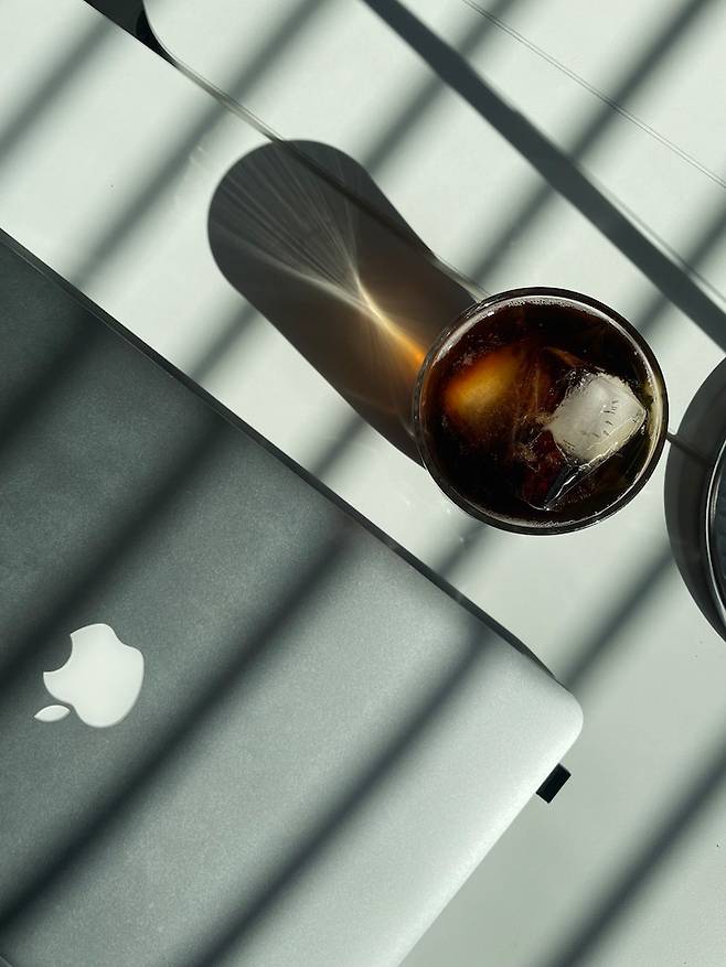 개인적인 업무가 있을 때는 이렇게 블라인드 너머로 들어오는 햇살에 조명을 조금 더해 사용하다가 커피도 틈틈이 뽑아서 만족스러운 시간을 보냅니다.