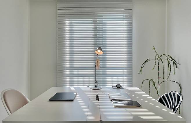 창문 가까이 섰다가 다시 멀어졌다가를 반복하던 어느 날, 문득 새로운 계절의 문턱에서 유난히 길게 들어오던 햇살을 보고 블라인드로 결정하게 되었습니다.